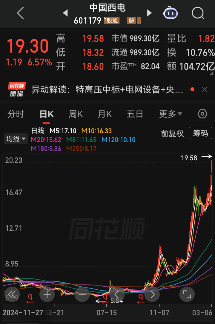 近期电力板块迎来一波强势行情,豫能控股、金开新能、中国西电、协鑫能科、汉缆股份这几只东说念主气股纷纷创出阶段新高,资金对电力赛说念的温煦度也不息攀升。这波行情并非未必,而是人人电网升级需求、国内务策利好以及行业本人发展周期共振的着力,而3月6日的盘中走势更是直不雅体现了资金对不同标的的格调,皆集各家公司的中枢优势,也能看出不同企业在行业波澜中的发展后劲各异。需要证实的是,以下仅为基于行业信息和公司基本面的客不雅分析,不组成任何投资提倡。