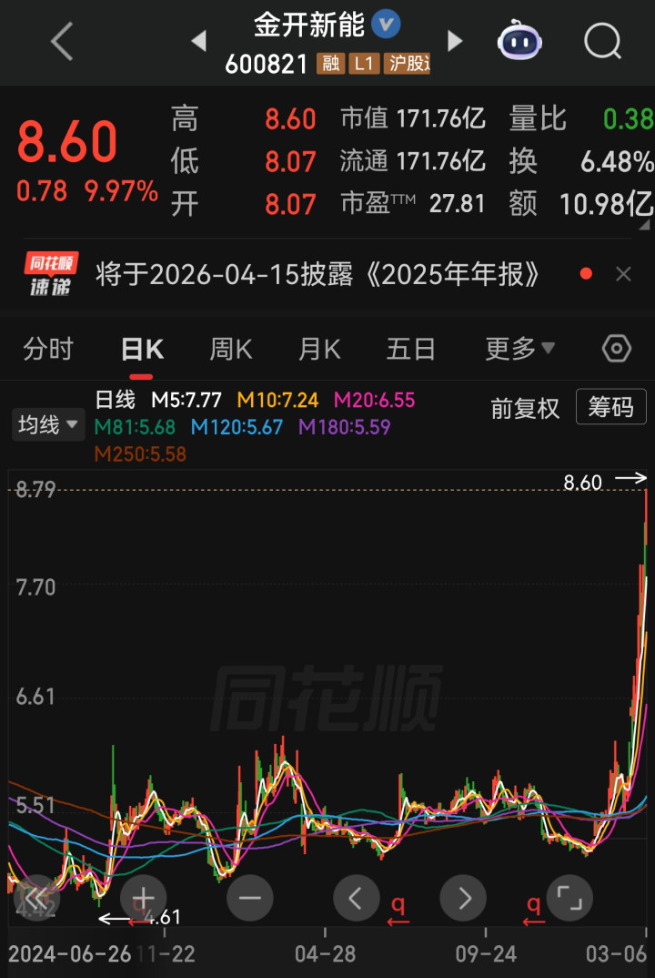 再谈金开新能,3月6日该股相似迎来反包涨停,和豫能控股一齐成为算电协同主张的中枢标的,今日成交额10.98亿,诚然不如豫能控股,但也保持了可以的交游活跃度 。金开新能的中枢优势聚焦在新动力发电领域,公司在光伏、风电等清洁动力发电上布局深厚,光伏电站和风电技俩标装机畛域稳步增长,是国内新动力发电领域的清贫玩家。当下清洁动力占比不息擢升,绿电交游市集不休完善,金开新能凭借本人的绿电产能,在绿电交游和碳钞票变现上具备自然优势。同期,公司也积极布局算电协同关系业务,将绿电产能与算力需求皆集,契合了当下电力行业的发展趋势,这亦然资金温煦的清贫原因。