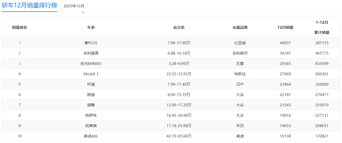 从轿车、SUV和MPV的销量前十名排名里可以发现,现在中端车的主力车型照旧轿车;SUV畅销车以中端车和主流车为主,新能源汽车占相比高;MPV的畅销车是以高端车为主,现在畅销车里有半数以上是新能源汽车。在前十名里的轩逸、朗逸、速腾属于主流家用轿车,帕萨特和凯好意思瑞属于中端车,奥迪A6L属于高端车;Model 3的居品定位略高于帕萨特、凯好意思瑞,但又略低于奥迪A6L;秦PLUS的居品定位与轩逸等车看皆。